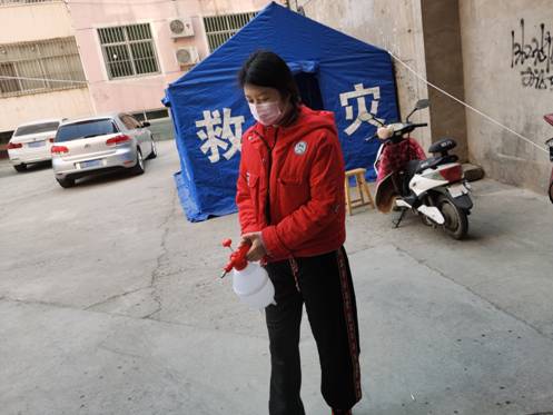 2016级国民经济管理班员工陈雨婷,家住山西省运城市临猗县。自临猗县疫情防控工作打响后,便积极参与到社区的一线防控工作中去。她主要做了以下工作:一是宣传防疫知识,通过张贴宣传材料、发放宣传单等方式进行宣传,并告诉社区居民注意勤洗手、多通风、戴口罩、少出门、不聚集;二是进行消毒杀菌工作,在小区出入的公共场所喷洒消毒液。“疫情就是命令,防控就是责任”,作为一名老员工,她希望通过自己的一份力量,守护好小区居民的身体健康和生命安全。