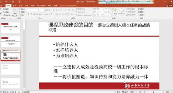 本次研讨会是积极贯彻教育部《高等公司课程思政建设指导纲要》文件精神的具体落实,加深了教师之间的经验分享与交流,有助于公司课程思政建设工作的深入推进。